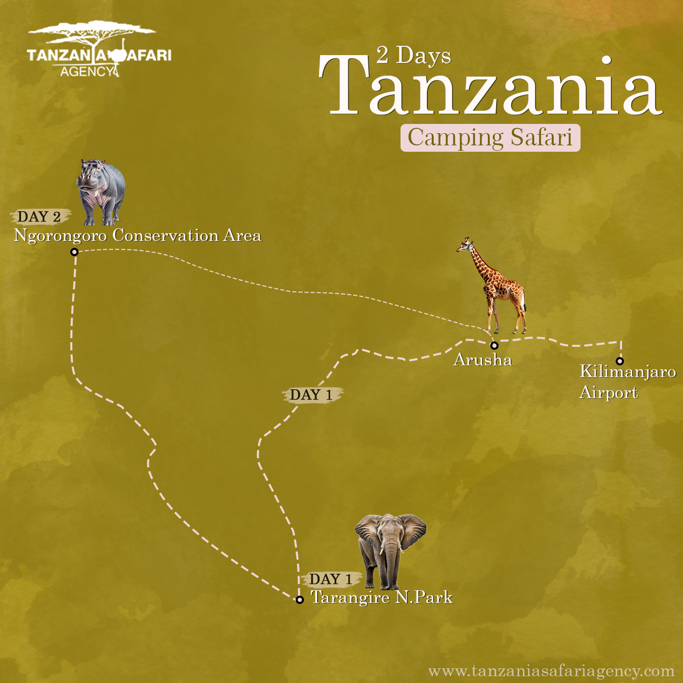 This 2 Day Tanzania Camping Safari will take you to Tanzania's most renowned UNESCO world heritage site, the Ngorongoro Crater, as well as Tarangire National Park, a world-famous safari park known for its distinctive elephant herds. The park and the Ngorongoro Crater are not far apart, and with a variety of lodgings built up at Karatu (just outside the Ngorongoro Conservation), you can have a very fulfilling Safari In Tanzania in only two days and one night at one of the several campsites in the Karatu region, or even the Mto wa Mbu and Lake Manyara area, which is really midway between the two wildlife areas.