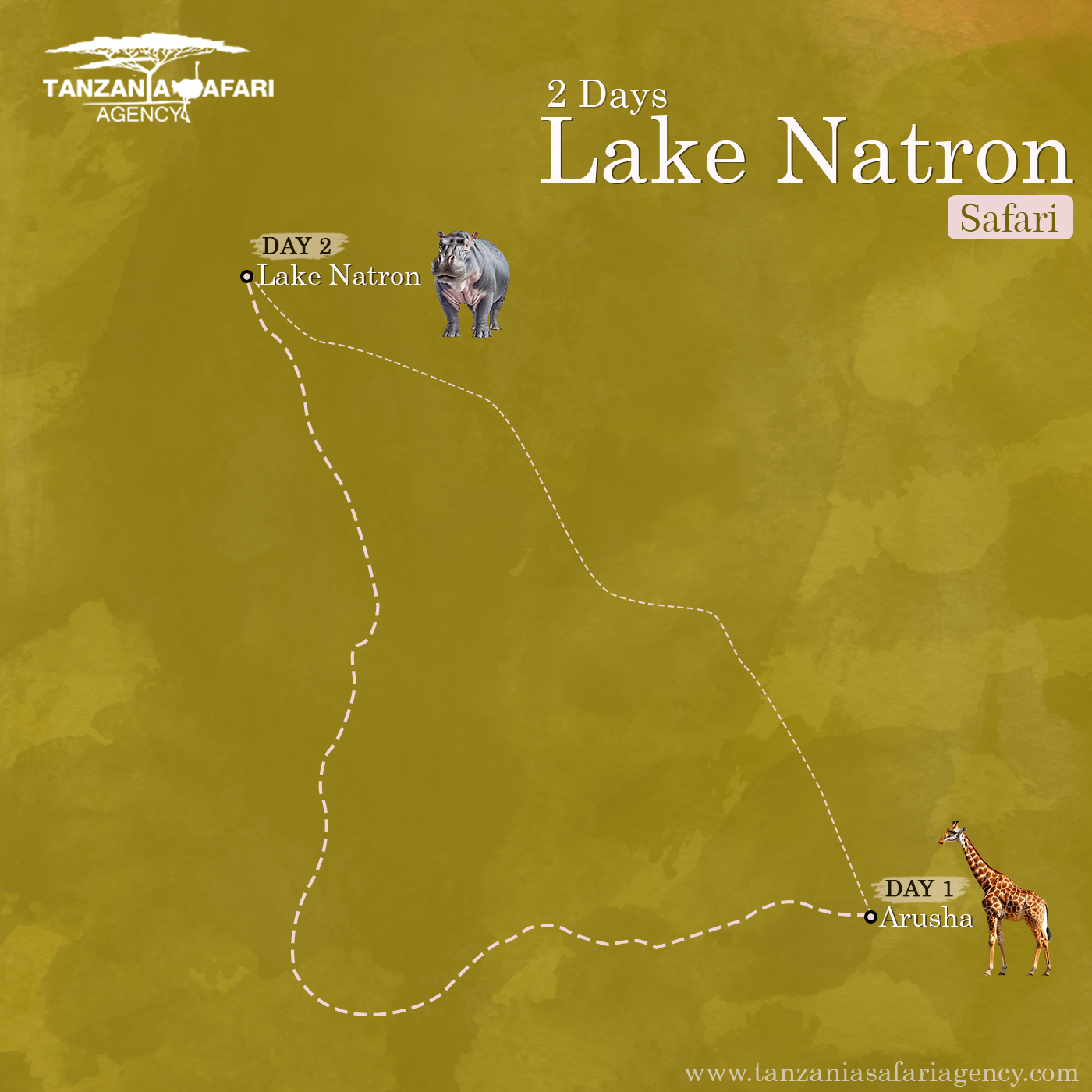 Once you finish your hike, you’ll start heading back to Arusha for another 4 hours. Lunch will be provided on the way. This is the end of our 2 Days Lake Natron Safari in Tanzania.