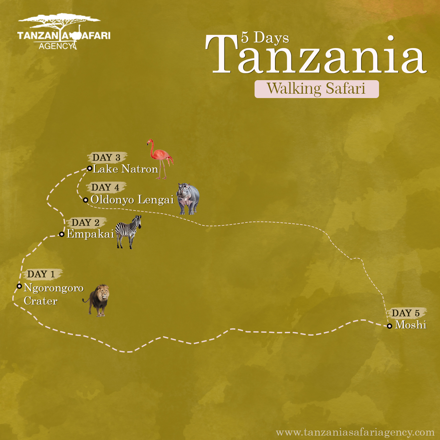 On 5 Days Tanzania Walking Safari is permitted in some of the wild areas, each with different rules. With great professional experienced guides of Tanzania Safari Agency let visitors encounter the wild first hand.