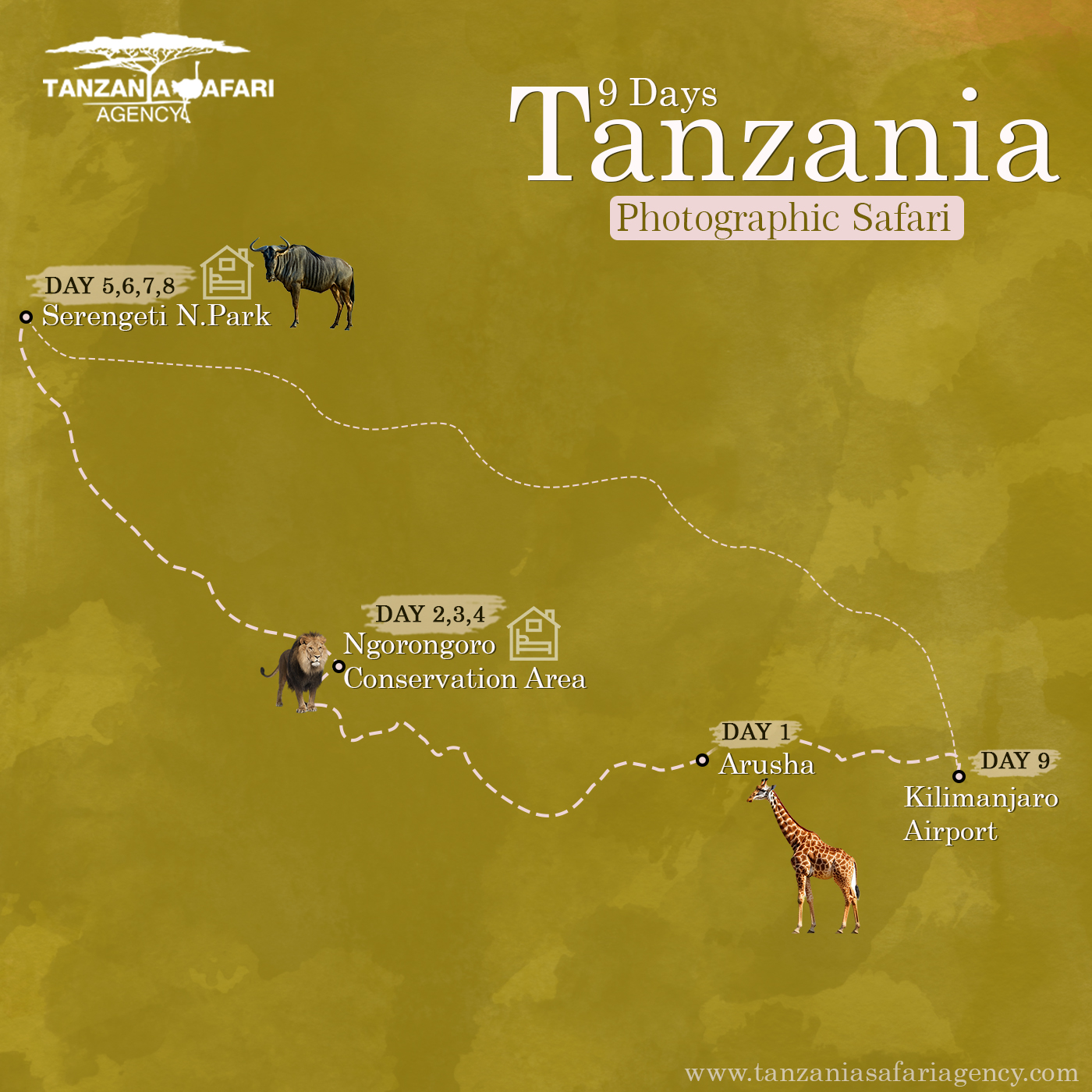 The 9 days Tanzania Photographic Safari will take you to southern Serengeti for migration season and offer you 9 days of scenic on the vast savannas full of wildebeest. Tanzania Safari Agency offers you a 9-days Tanzania photograph tour.