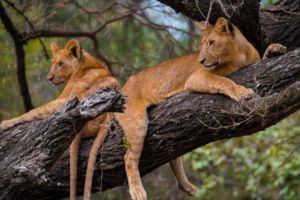 Tree-Climbing Lions: Witness the unique behaviour of lions climbing trees.